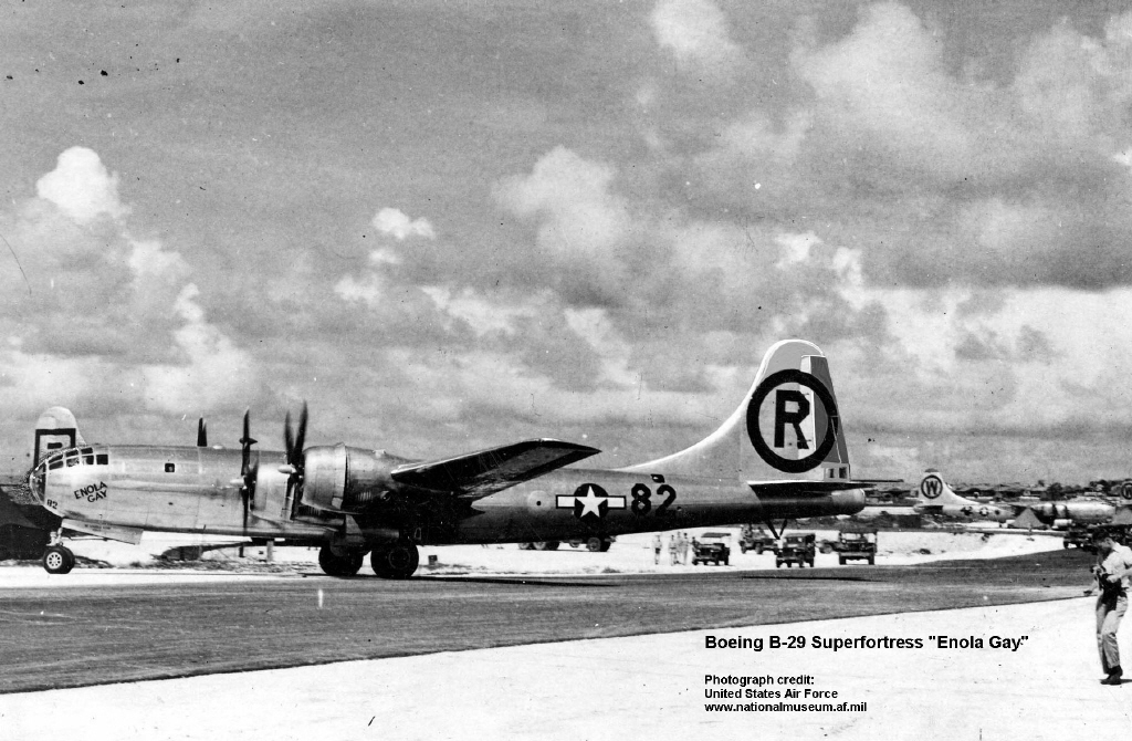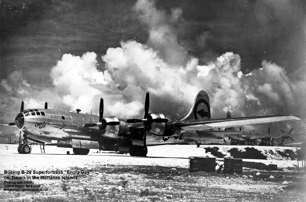 On August 6, 1945 the crew of the Boeing B-29 Superfortress Enola Gay, piloted by Colonel Paul Tibbets, dropped the Little Boy atomic bomb over Hiroshima, Japan. Japan did not surrender.