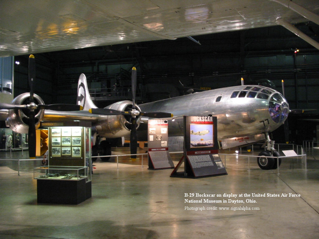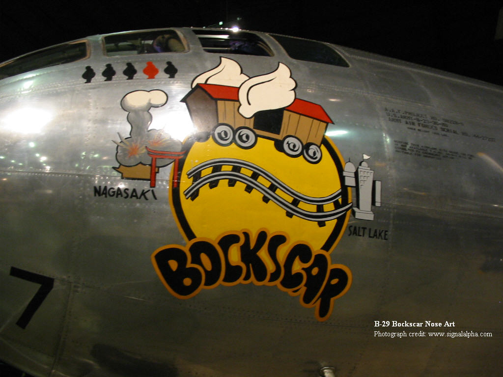 The photographs below are of the B-29 Bockscar on display at the United States Air Force National Museum in Dayton, Ohio. The nose art was added after the atomic bombing mission.