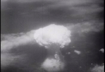 The photographs below are of the Enola Gay on Tinian in the Marianas Islands, an atomic bomb explosion, and Hiroshima ruins.