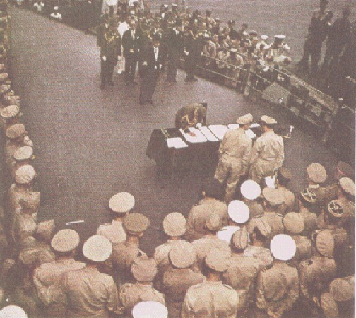 For more information about the Japanese surrender and photographs of the surrender ceremony aboard the U.S.S. Missouri, visit the Japan Surrenders page.